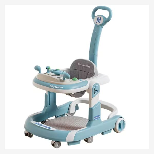 A multifunctional 4-in-1 baby walker with wheels, adjustable height, music, and lights. Features a comfy seat, push walker mode, and fun activity functions to support your baby’s first steps.